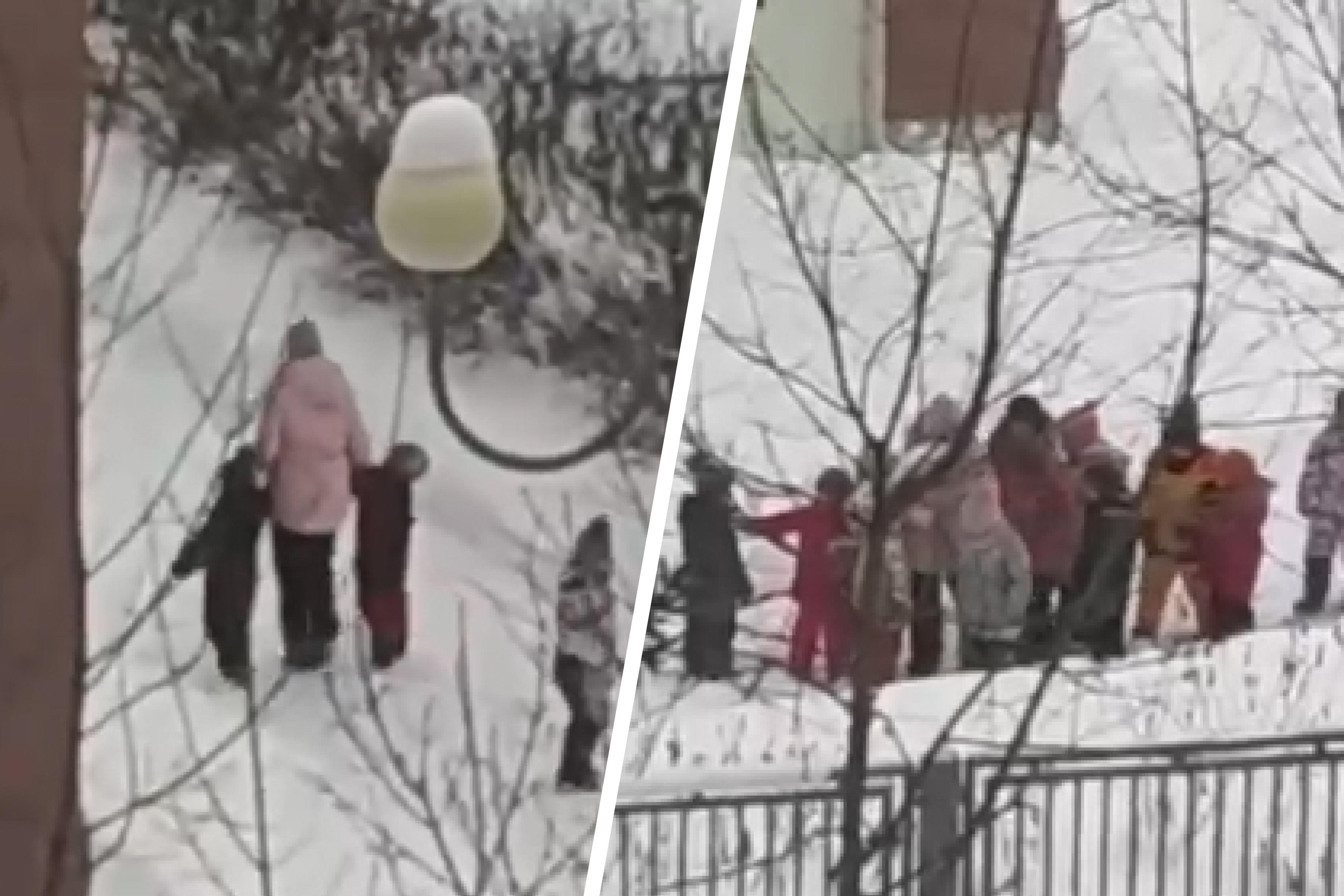 Жители подмосковных Мытищ стали свидетелями жестокого обращения воспитательницы детского сада «Березка» с воспитанниками. Одна из местных жительниц засняла на видео, как педагог толкает маленькую девочку в снег, а затем грубо тащит за руки других детей.