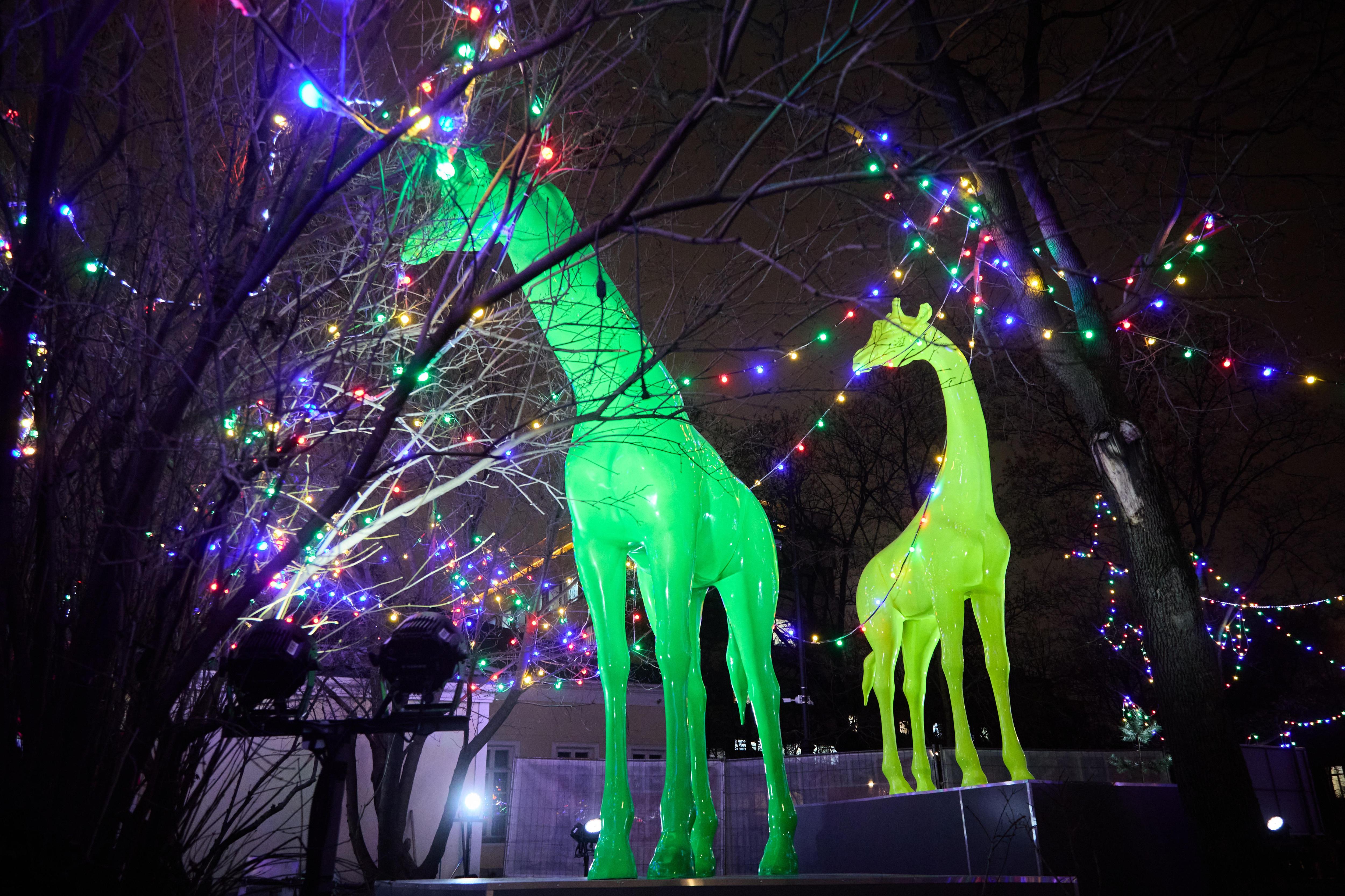 У стен Филатовской больницы появились неоновые жирафы.
