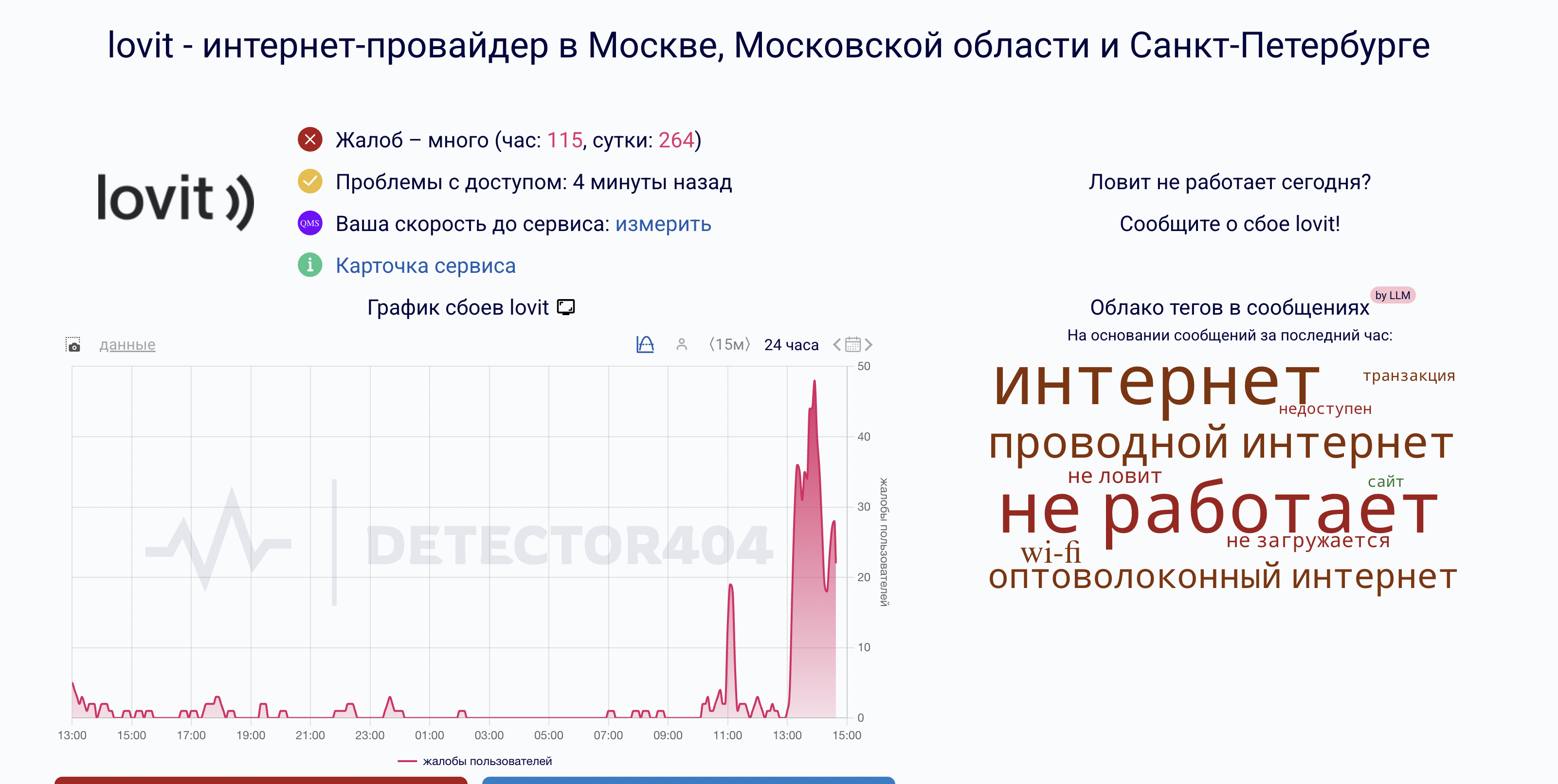 Клиенты делятся впечатлениями в соцсетях. Один из них написал: «lovit — сбой сегодня». Другой пользователь подтвердил: «Сбой проводного интернета». Также в сети появляются жалобы на невозможность работать или учиться онлайн.