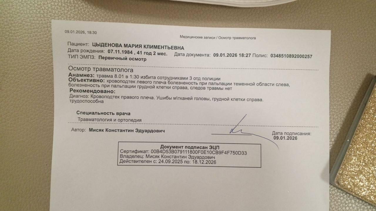 Мария Цыденова, жительница подмосковного Подольска, сообщила, что следователь отказал в возбуждении уголовного дела по факту её избиения в полиции.