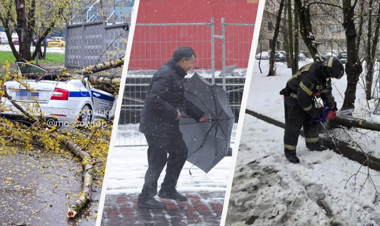 Мощный апрельский снегопад в Москве и области привел к многочисленным разрушениям, отключениям света и тепла, а также к двум смертельным ДТП.