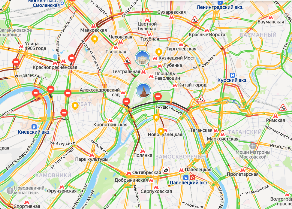 Движение полностью прекращено на следующих участках: