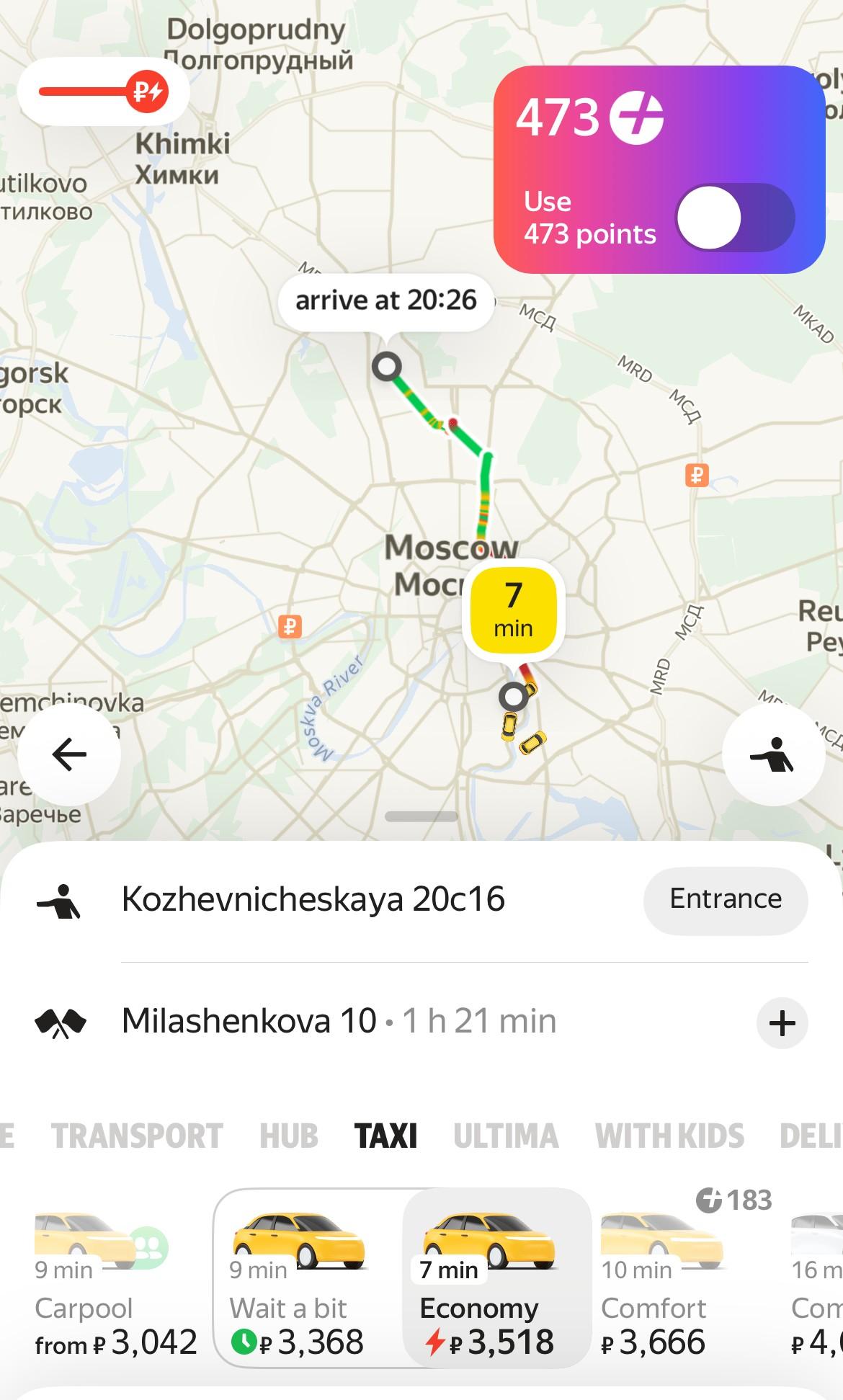 Поездка на такси от Кожевнической улицы до улицы Милашенкова на севере Москвы оценивается в 3500 рублей, время в пути составляет почти полтора часа. В пресс-службе «Яндекса» отметили, что говорить о долгосрочном росте цен из-за часов пик некорректно, поскольку тарифы впоследствии возвращаются к стандартным значениям.