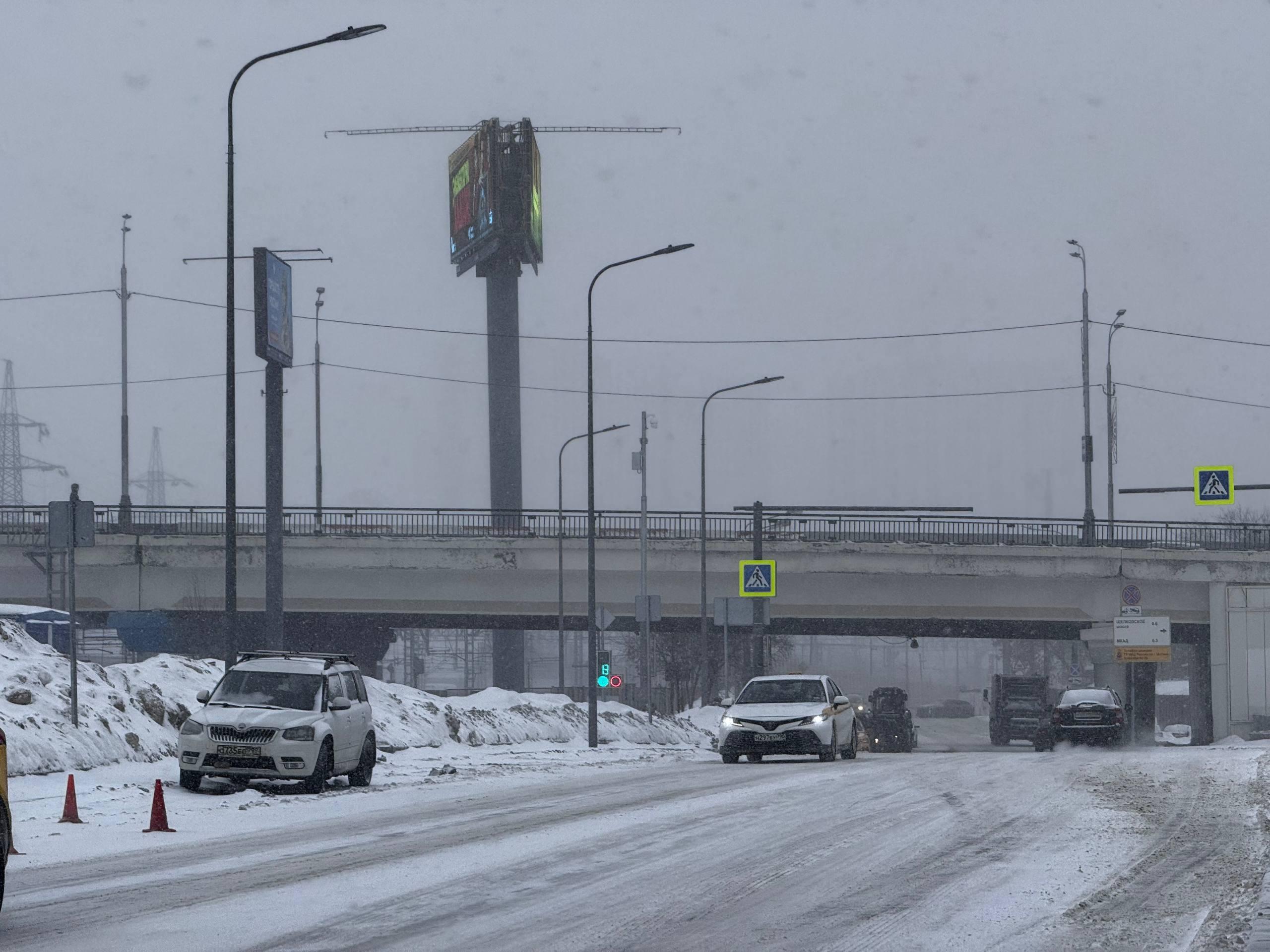 Из-за метели и гололеда в Москве образовались пробки в 7 баллов. На МКАДе движение осложнили буксующие грузовики.