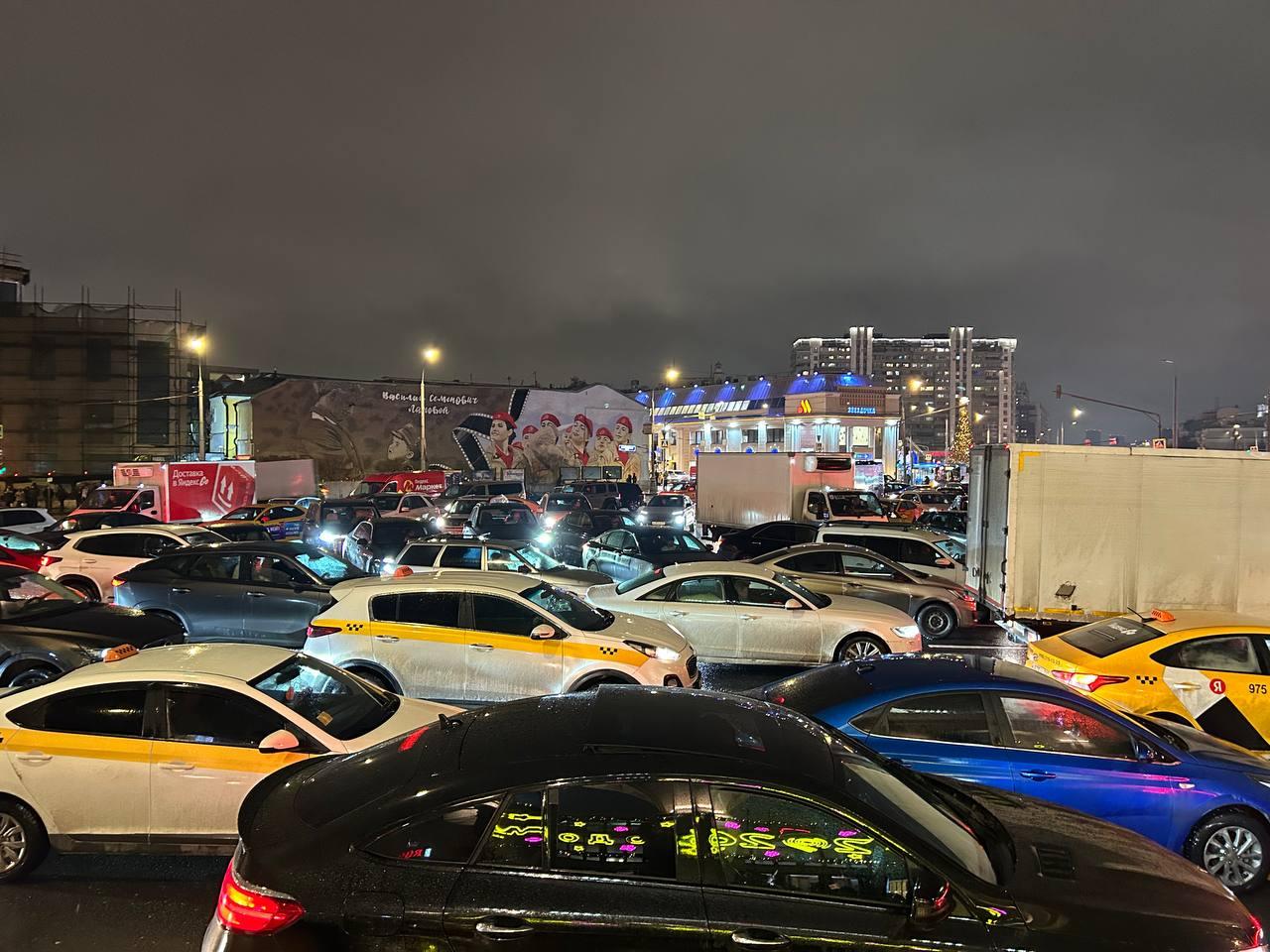 Возмущённый автомобилист заявил: «Один километр стоим 2,5 часа. Весь центр до ТТК багровый».