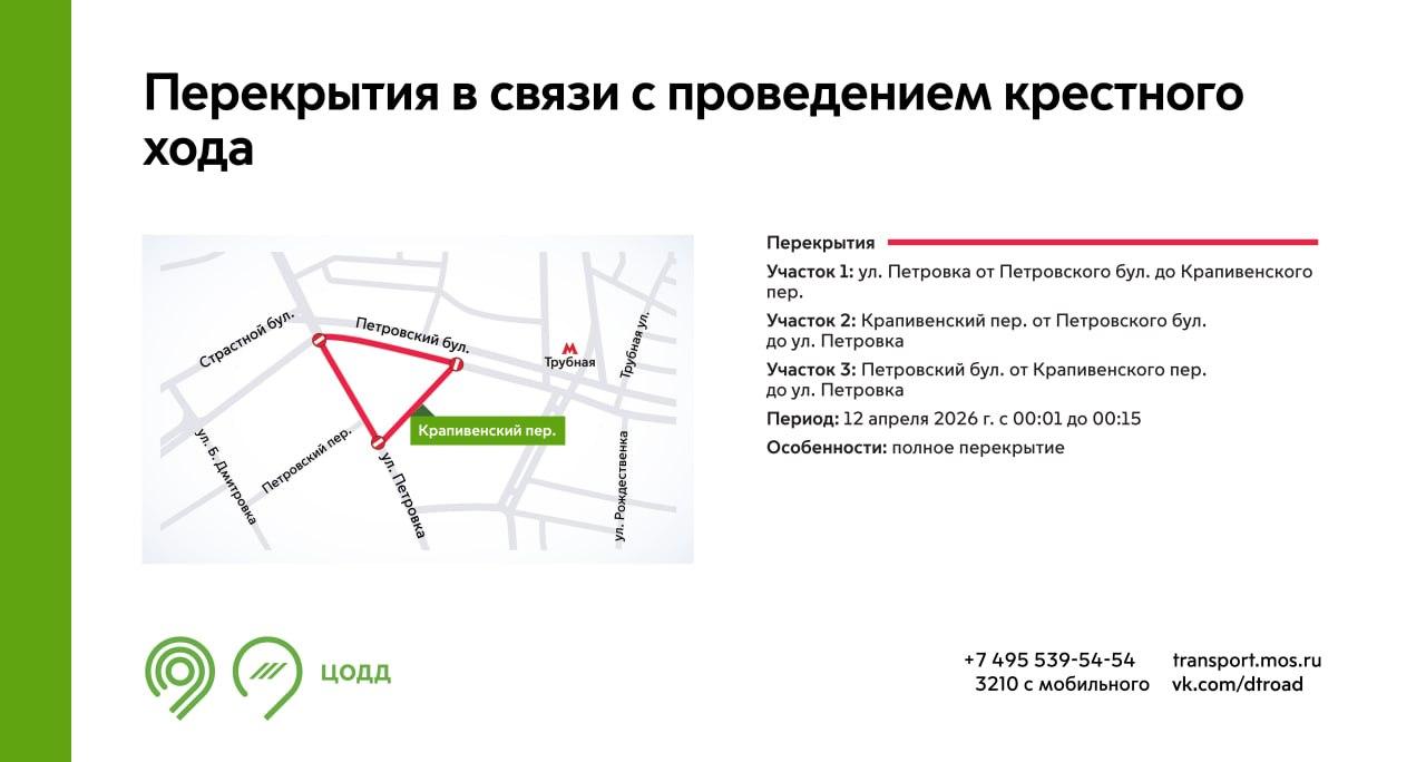 - Крапивенский переулок (от Петровского бульвара до улицы Петровка);